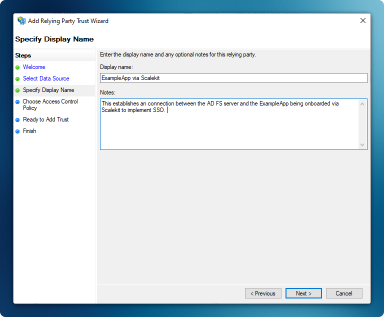 Section titled “Set Display Name”- Enter a descriptive name for your application (e.g., “ExampleApp”)