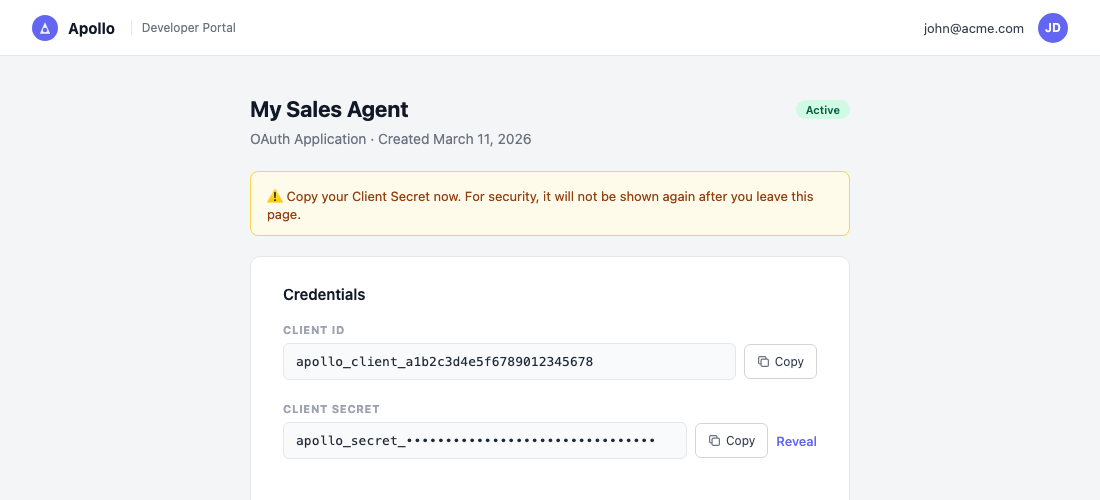 - Client Secret — from Apollo